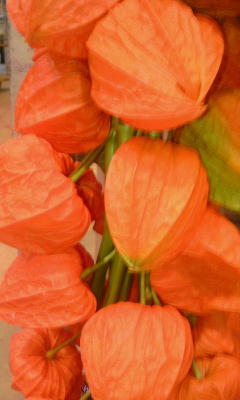 ホオズキの実を包んでいるオレンジ色の部分は、実は花が咲いた後、六角状の萼の部分が発達して果実を包み袋状になるそうです。以外な感じです。
